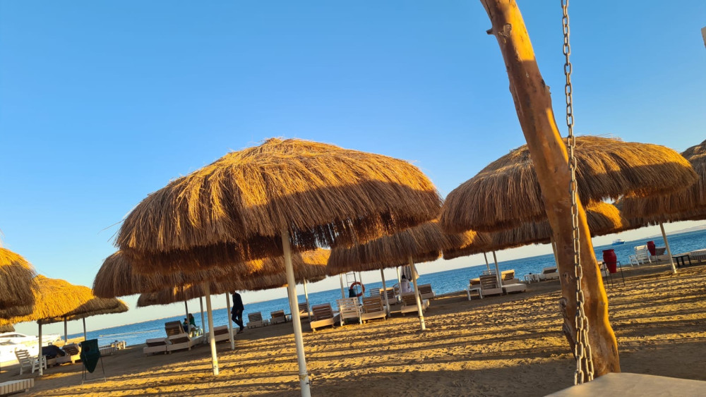 Pláž: 80m, soukromá, hlídaná plavčikem, písek, pozvolný vstup bez mola, poblíž korálové podloží, slunečníky a lehátka v ceně, restaurace. Možnost šnorchlování a potápění. Krásné moře.