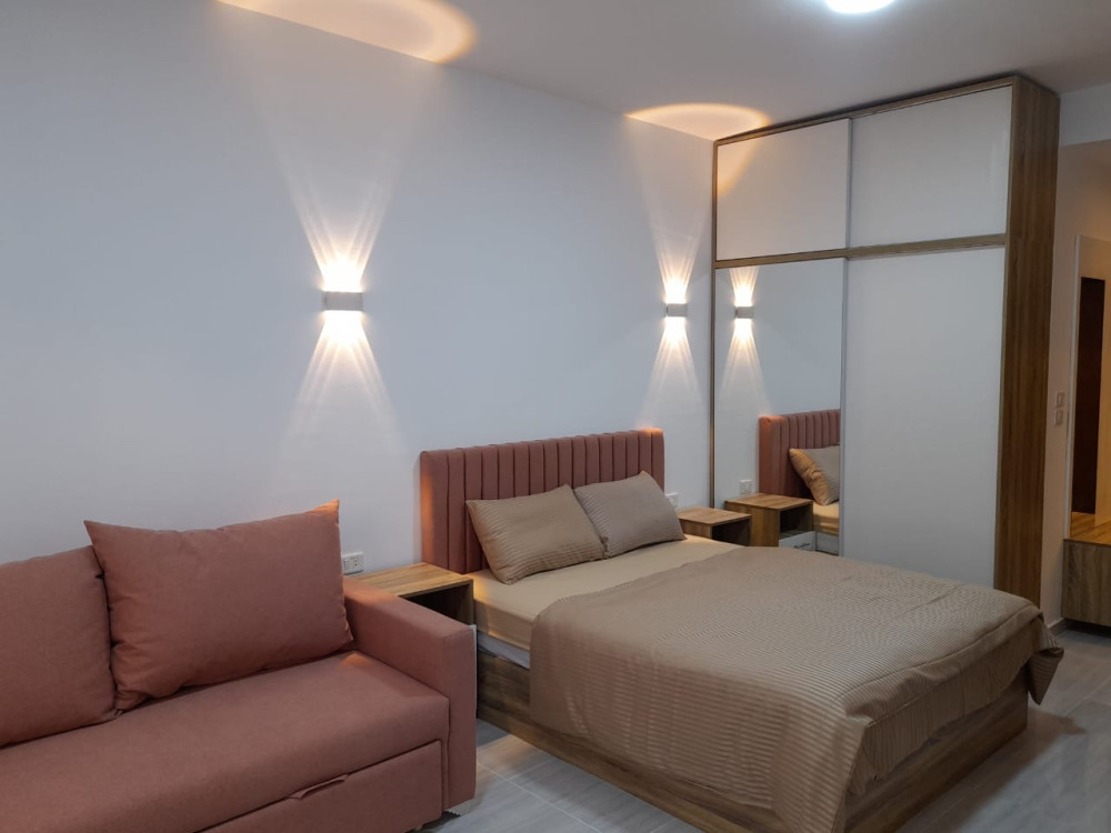 Byt je v novému hotelovém komplexu s vnitřním bazénem na plavání a s barem. Studio 49m2 pro 4 osoby s balkónem. Kuchyňská linka včetně velké lednice, pračky, mikrovlnky, dvojvařiče, kávovaru a dávkovače na studenou a teplou vodu. Velká manželská postel, rozkládací pohovka, stůl, židle, skříně, lodžie s posezením, koupelna, klimatizace, TV s českými programy.